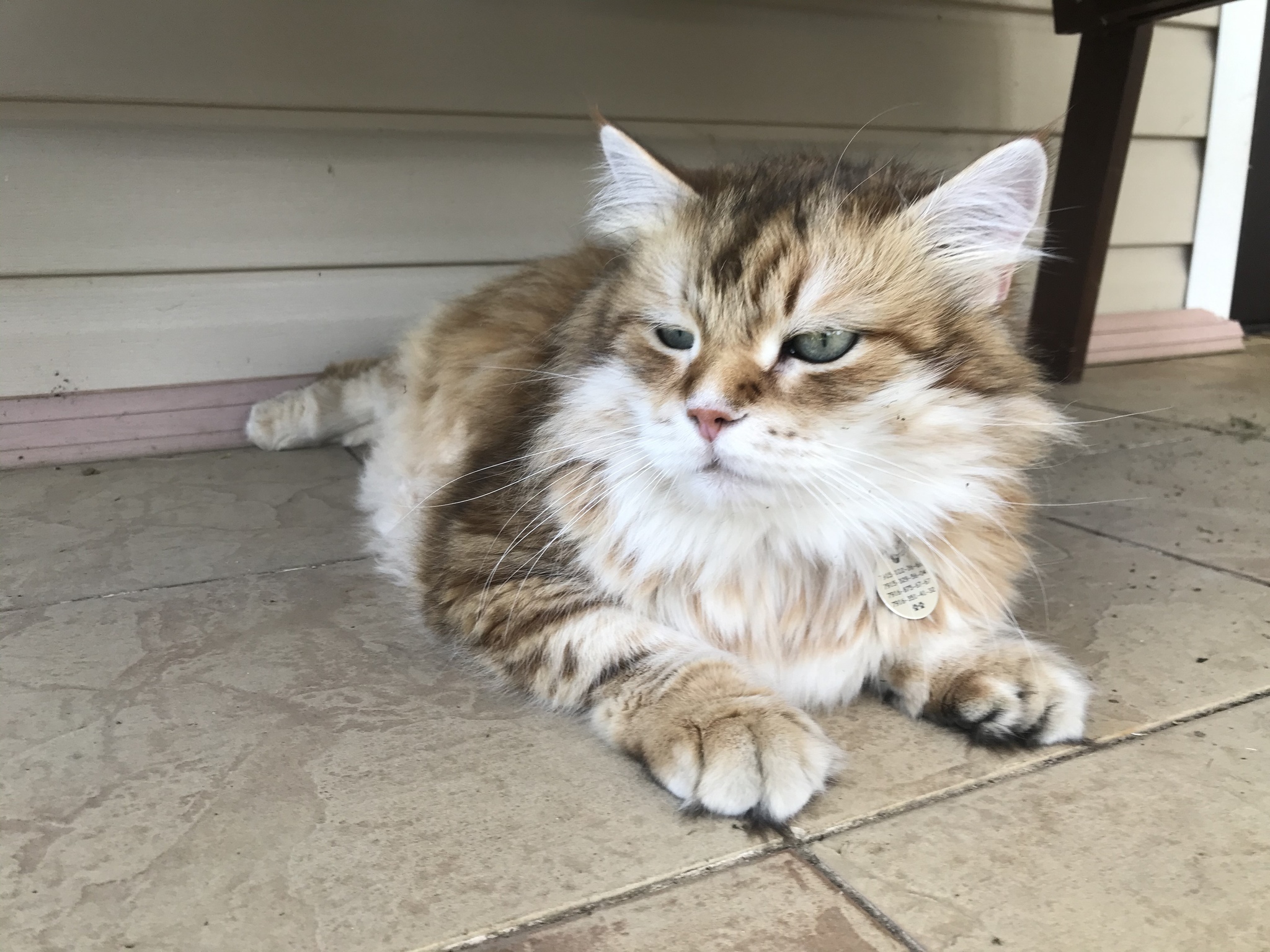 Теперь кусают комары и первый вечер он был весьма растерян (как раз на фото), но кроме этих нюансов царю наших зверей очень комфортно без шубы, стал спокойный, добрый и довольный, проводит вечера за ловлей всяких мотыльков да бабочек, наслаждается летом