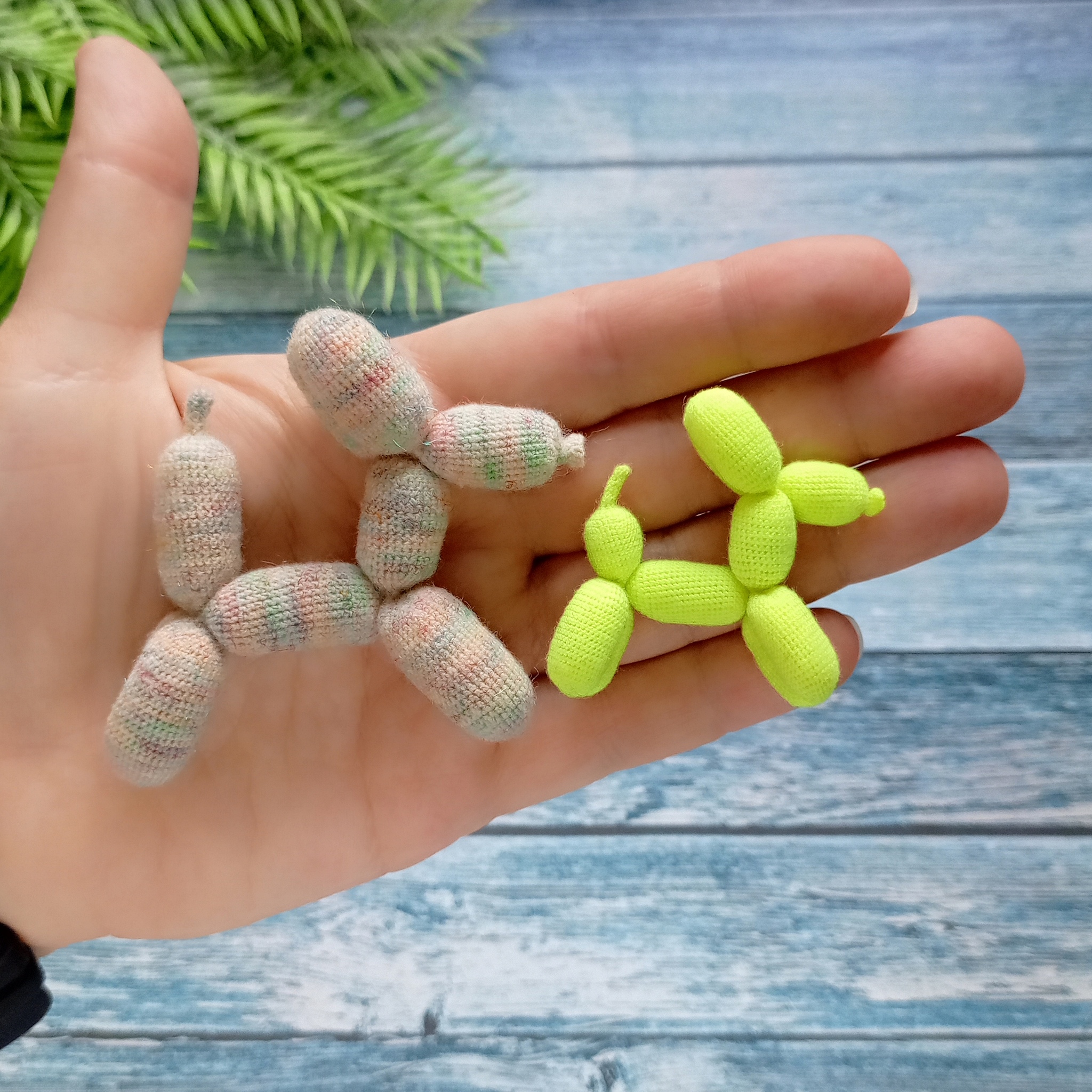 нашла выход - связала крючком , сначала "воздушный шарик", а потом скрутила (=сшила) собачек.