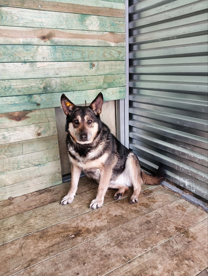 Груша долгое время сидела в вольере с еще двумя гуляющими собаками, и когда их брали на прогулку, лишь с интересом глядела им вслед из своей будки.