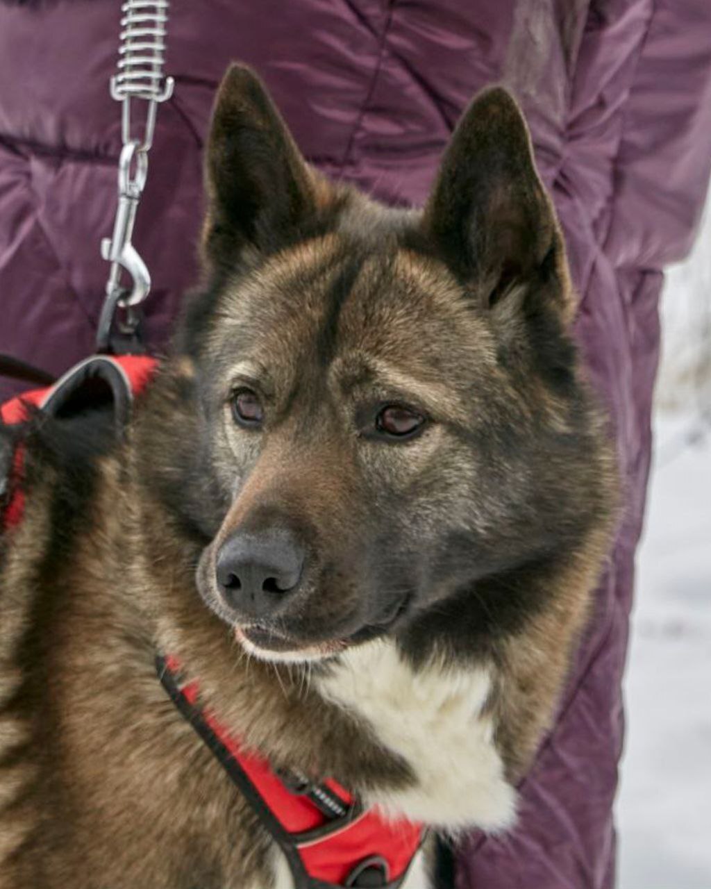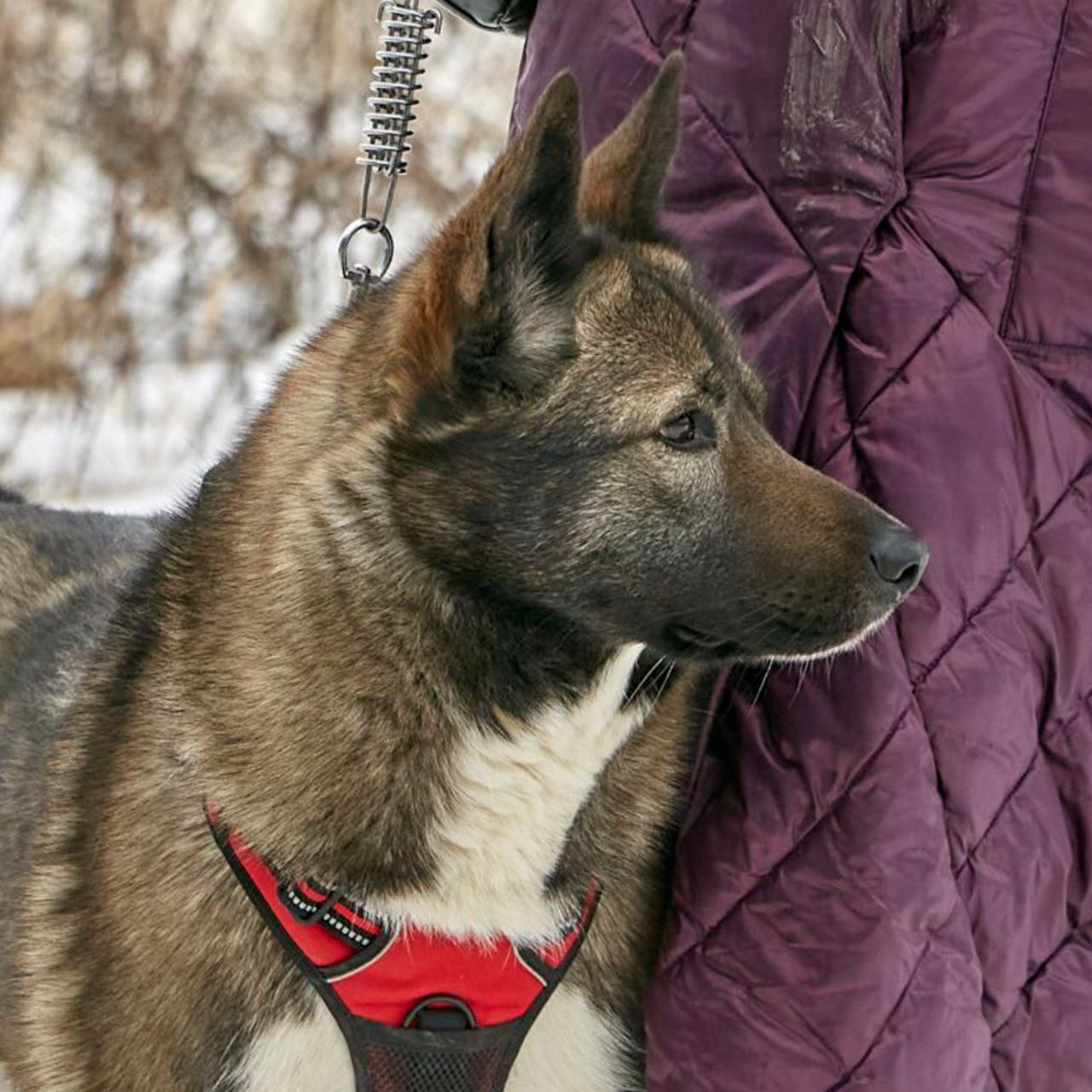 Её окрас называют «собольим» — черно-бурое, дикое золото. Она — метис хаски и акиты, впитавшая красоту одной породы и мощь другой. Рост — чуть выше колена, вес 25 кг. Симбе - 5 лет. На первый взгляд в ней чувствуется северная сдержанность, но стоит ей довериться — и вы увидите, какое это солнечное, нежное создание 💜