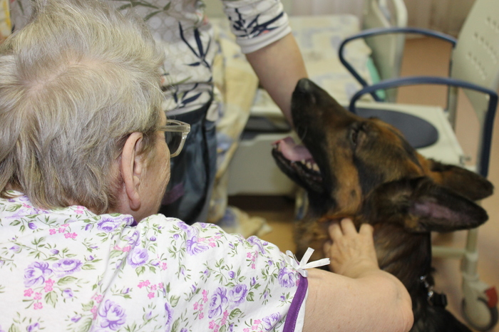 Всегда стараешься абстрагироваться...мужчина, который когда то служил в разведке и у него был немец...маленький сухонький старичок, у которого на глазах появились слезы при виде собаки и который протянул руки-спички на встречу и крепко, что есть силы, обнял пса...позитивная женщина, которую мы навещали 2 раза, а на 3ий раз ее уже не было...слезы,которые появляются на глазах у людей, у которых нет сил пошевелить руками, что бы погладить собаку(в такие моменты замечательные медсестры помогают, беря их сухие ручки в свои и помогают им прикоснутся к теплой, мягкой собаке)