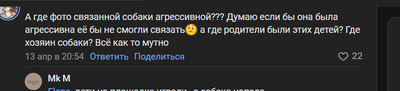 В районе Темерника агрессивная собака напала на двух детей! Пестрая 69Б и детская площадка рядом. Произошло всё в 17:15, дети сейчас в ЦГБ.Отлов отказался приезжать, потому что уже не работают сегодня. Собака укусила моего младшего брата, прокусила ему ухо, 13 внешних швов и 3 внутренних. У второго ребенка прокусана рука.Зоозащитники повезли собаку в ветклинику, чтобы найти чип и выйти на хозяина, а потом передать её на передержку! То есть неадекватное животное, которое жрёт детей, может снова оказаться на свободе!