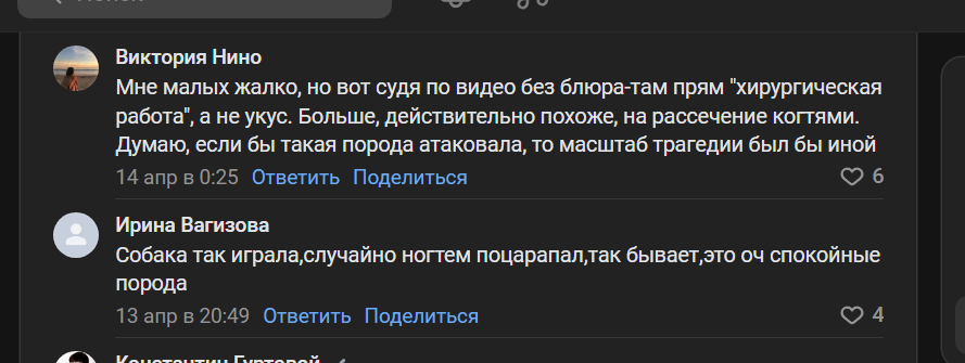 Нашлась и хозяйка бойцовских собак. Почему-то она оказалась не очень вменяемой и не очень вежливой. Лексика такая, как будто она только откинулась с чакана.