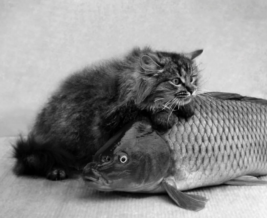 Люди ответили, что они так часто едят жареную рыбу, что котенку точно ничего не будет. Варвар наелся и пошел переваривать.