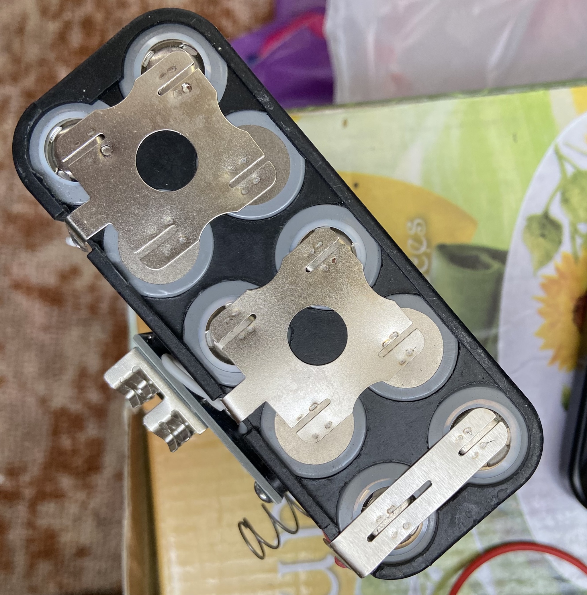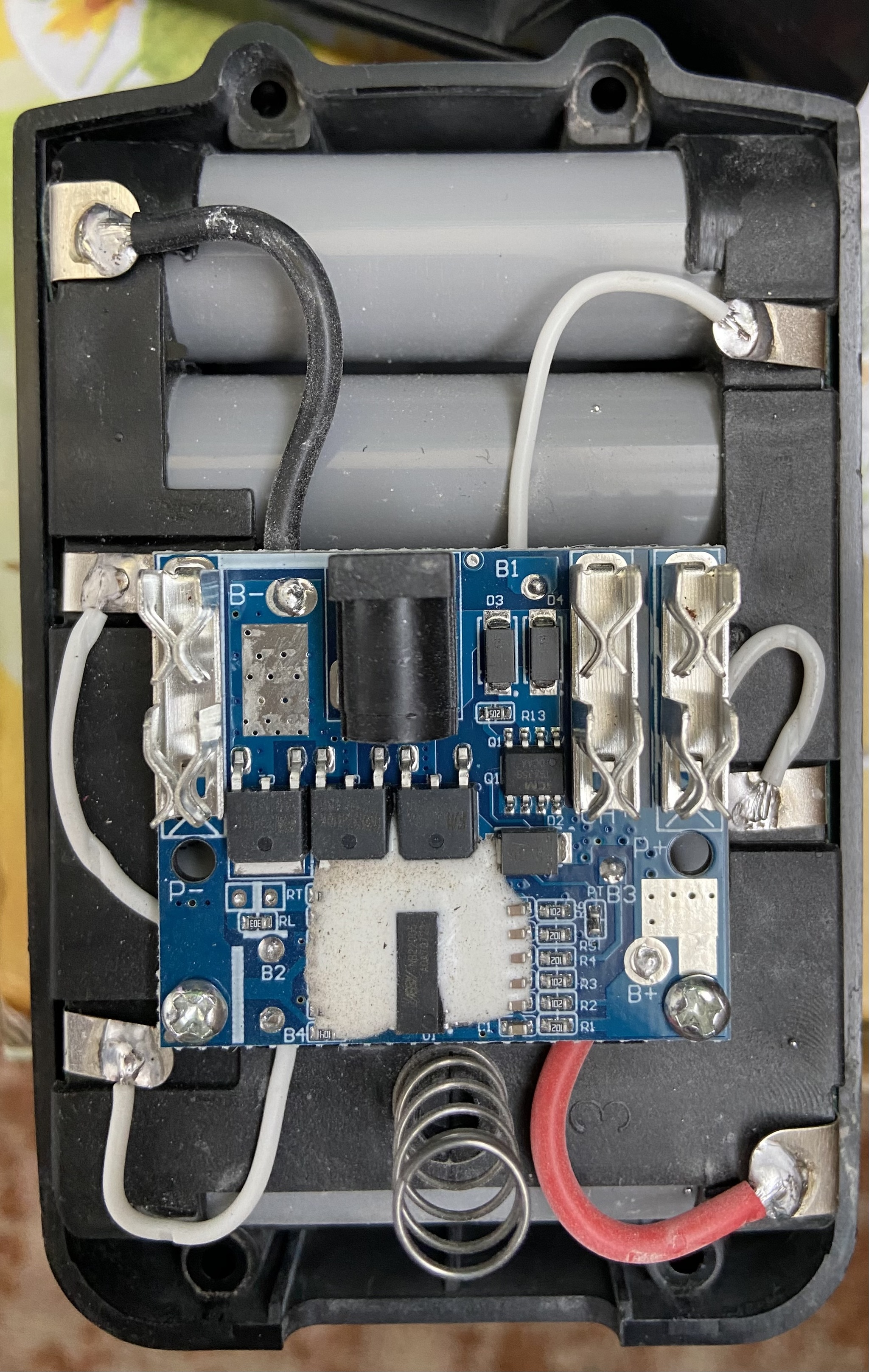 Купил китайский перфоратор с надписью «Макита» на озоне. Для отверстий 6мм в домашнем пользовании норм. Правда один АКБ сдох. Хочу собрать сборку на 18650 , которые в наличии (зеленые , на фото). Потянет ли плата bms 5s 10 шт зеленых аккумуляторов 18650 и дешевая зарядка (что на фото)?