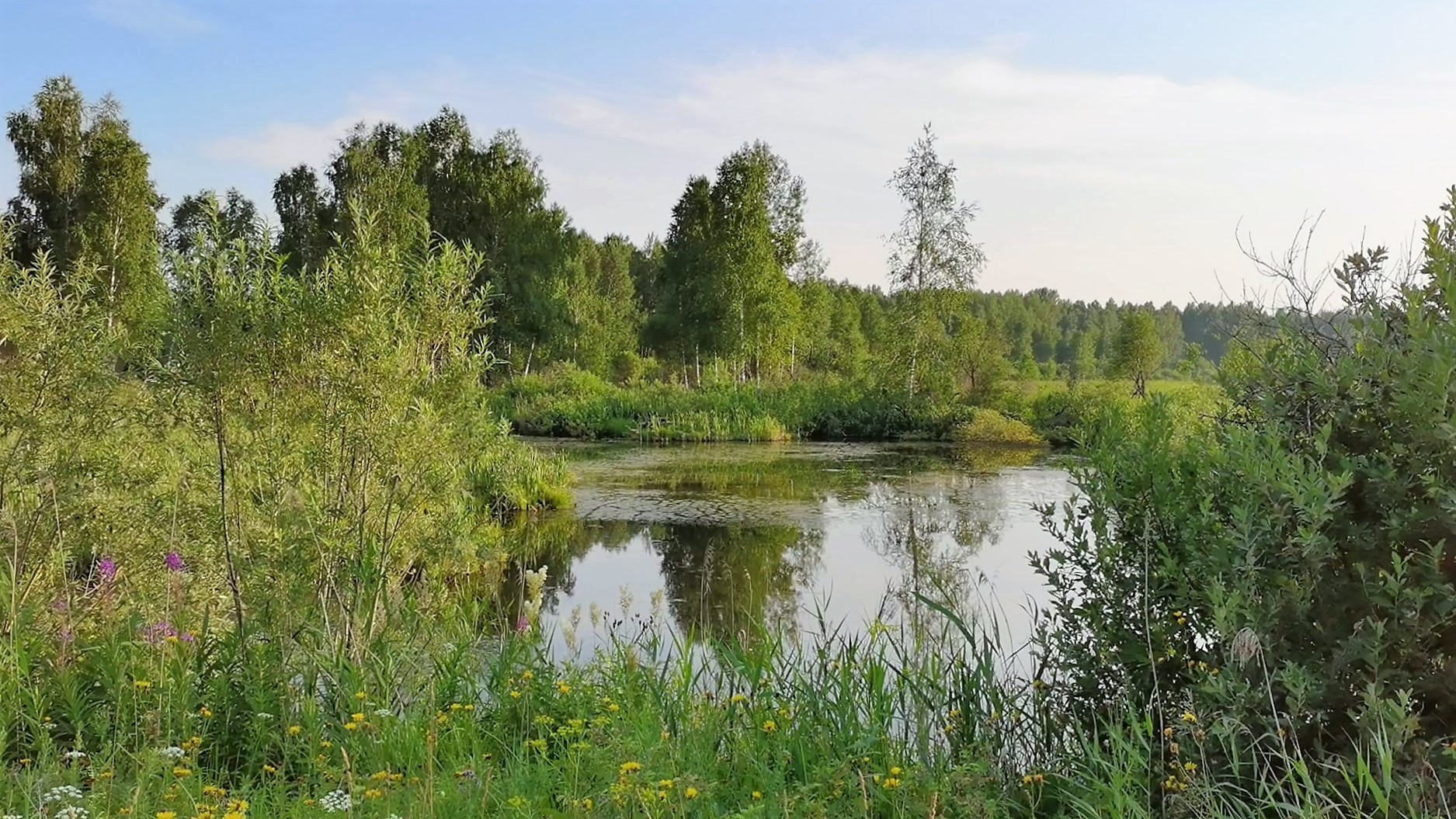 Вот бы художника найти! Такая красота! Обычное для нашей местности болотце, а так все живописно! Уточки плавают, но конечно, как только мы вышли из машины - все они улетели...