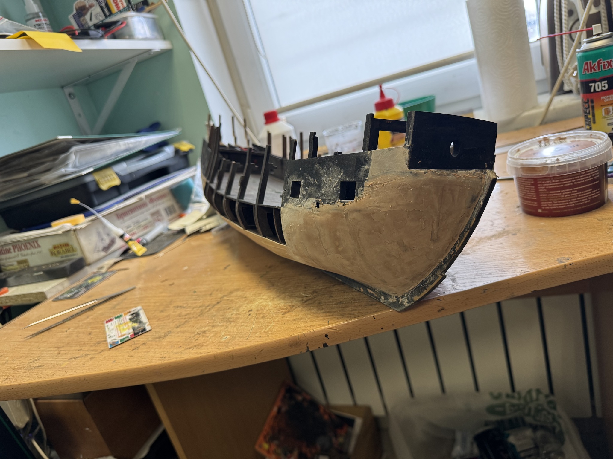 Ребят это Кит с Алика, я с ним намучился пипец, черновая обшивка вся кривая, кое как собрал и отшлифовал, далее уже от себя решил сделать еще и чистовую, но уже из шпона ясеня, варил его в кастрюле минут 15, затем нарезал на тонкие рейки, сушил, и обшивал.