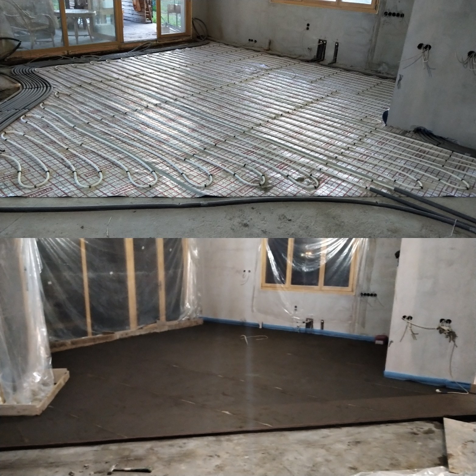 Теплый пол после монтажа стяжки.