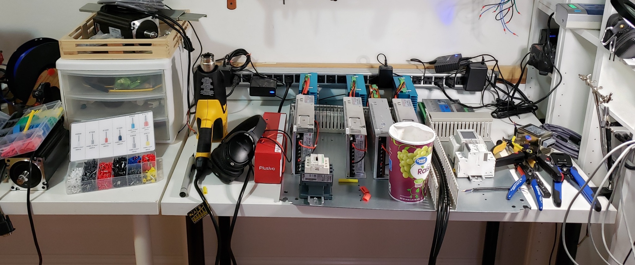 Вот как-то так чтоб было. Ко мне доехало ещё не всё что я хотел и кое-где я использовал то что было под рукой чтобы в качестве плейсхолдеров, чтобы понимать где сколько провода и вот это вот всё. В частности кое-какие автоматы, драйвер четвертой оси, релюшка с этой фотки, весь этот китайский мусор будет заменён на другой китайский мусор в дальнейшем, когда тот приедет.