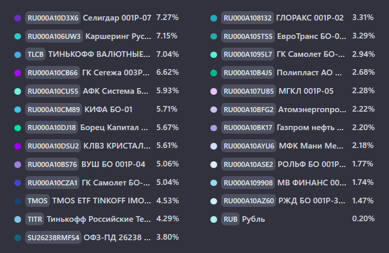 📍 На данный момент в портфеле 21 облигация и 3 фонда:
