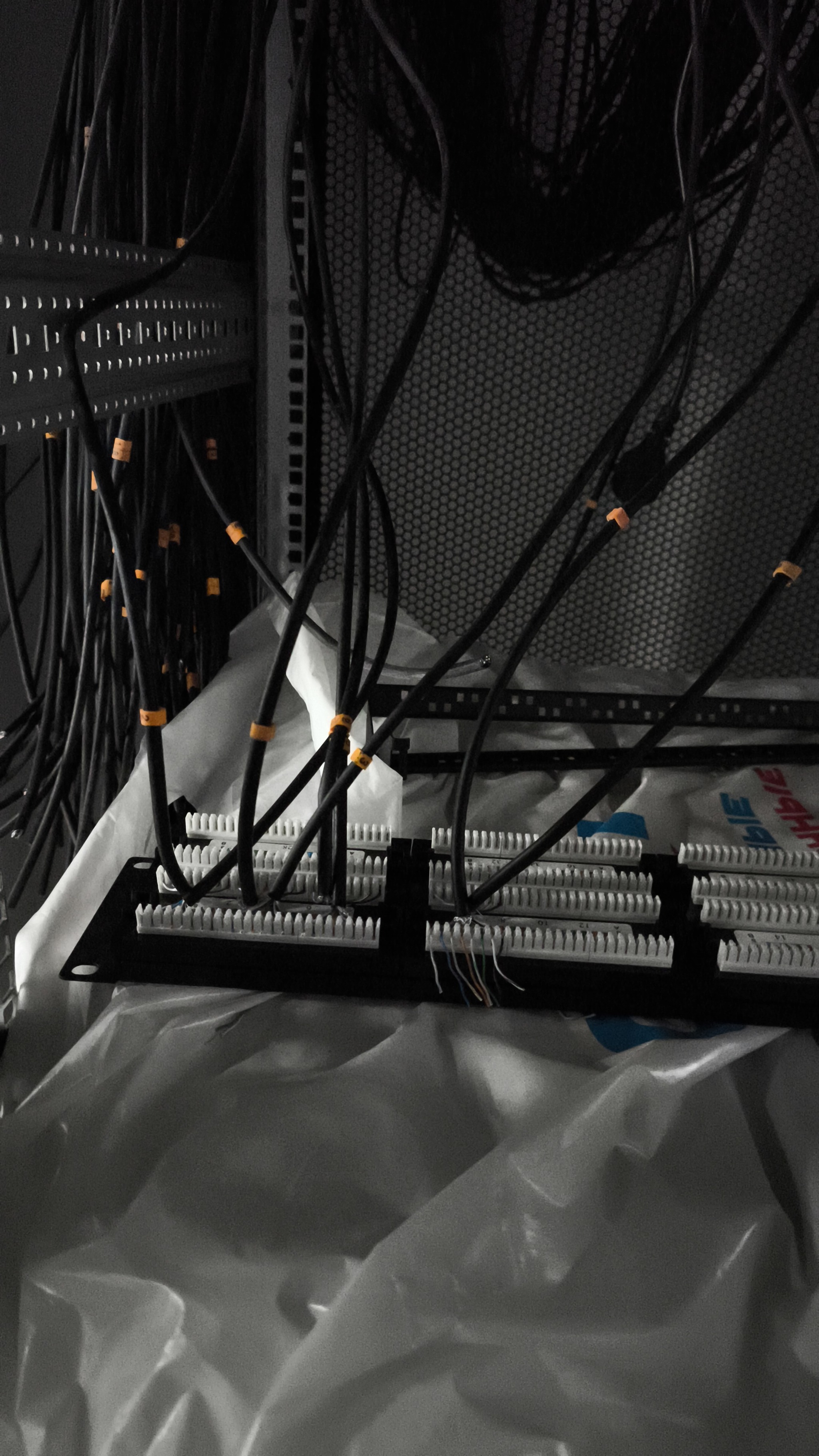 48 модульные 2х юнитовые патч-панели, органайзеры прищепки, 3х метровые патчкорды, подключение первых портов на самый нижний мутатор, шнурки спрятанные за стойку... Да ты извращенец! Розовые сопли не спасают.