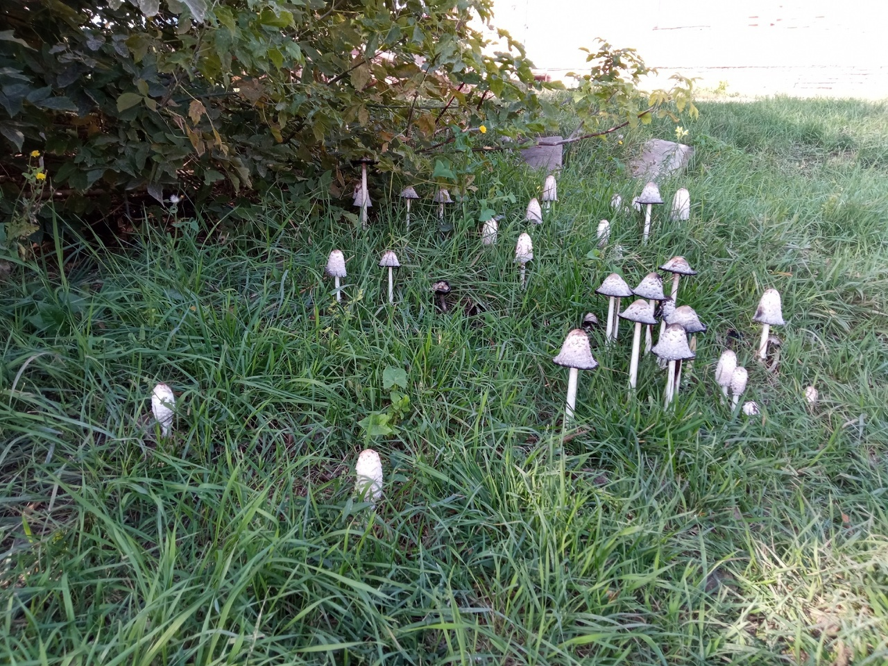 Так много поганок в одном месте я тоже никогда не видела - растут вокруг куста бузины... Их там видимо-невидимо - и все вот такие красавцы... Точь-в-точь как те сороки, которые у меня во дворе сорочье собрание устроили.