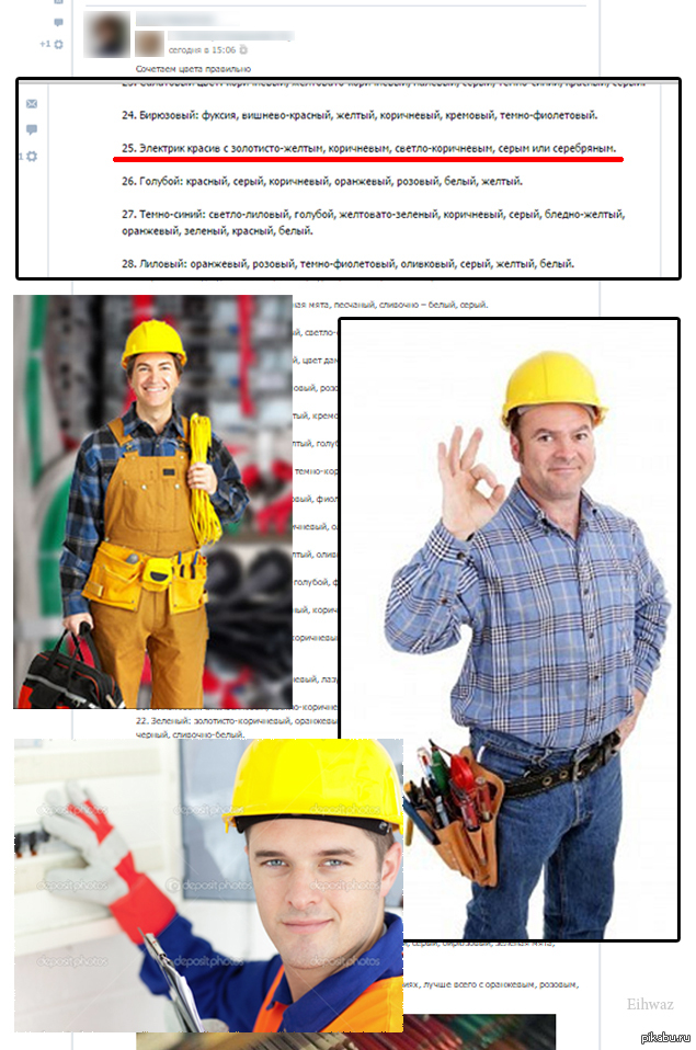 deoh Сочетаем цвета правильно 10 лет назад Специально для лиги электриков ВКонтакте Скриншот Цвет Электрик