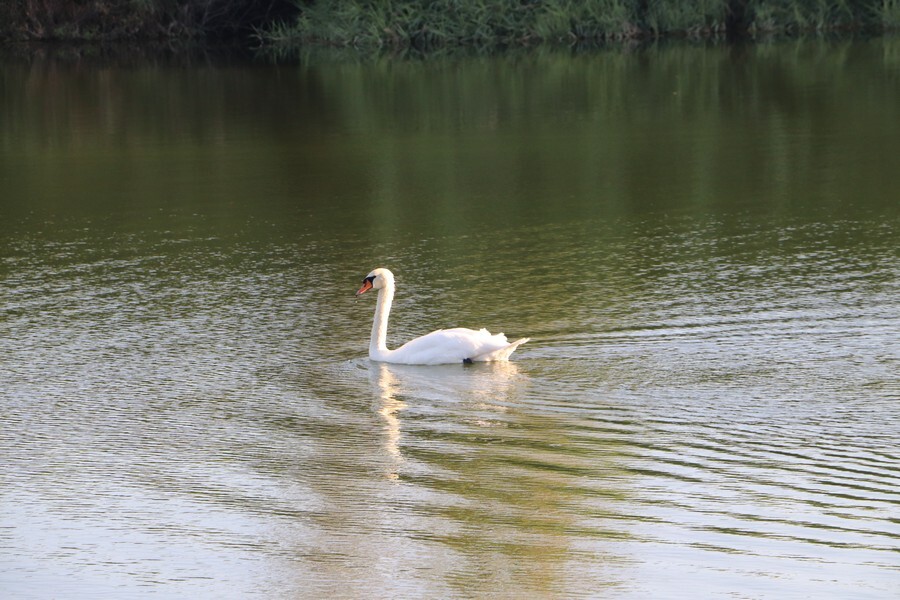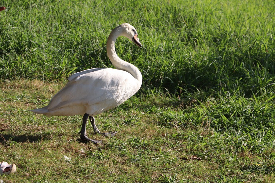 Помимо гусей и уток в парке постоянно живут лебеди.