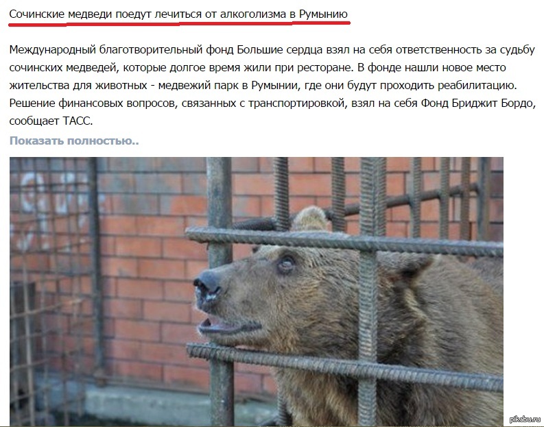 75 ScPaRadox1 Сочинские медведи поедут лечиться от алкоголизма в Румынию 10 лет назад мне нечего добавить Юмор Медведи Россия Водка