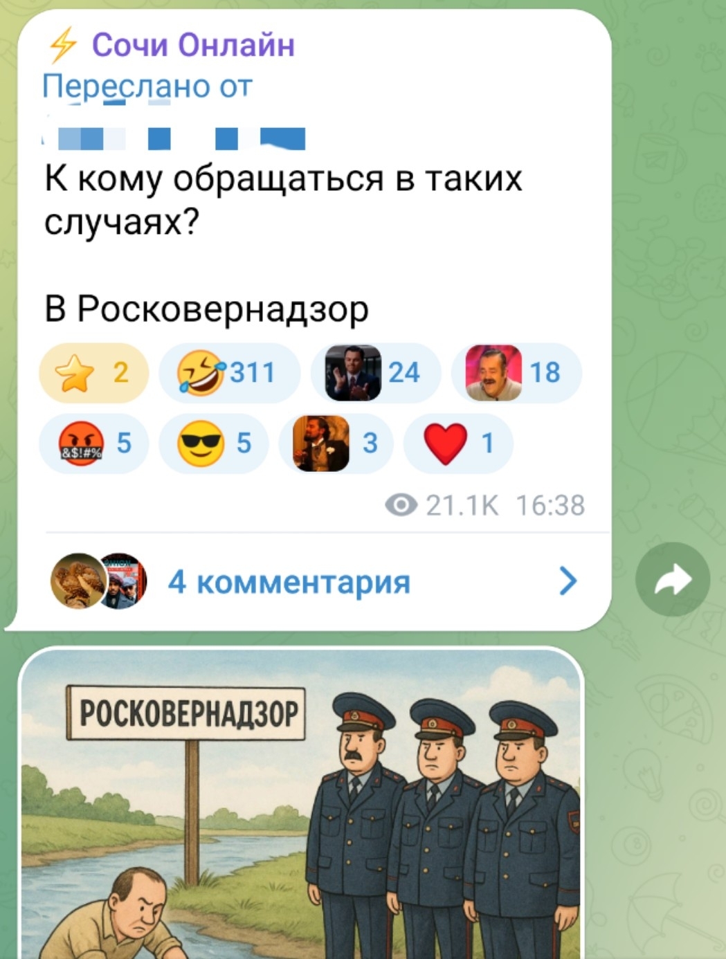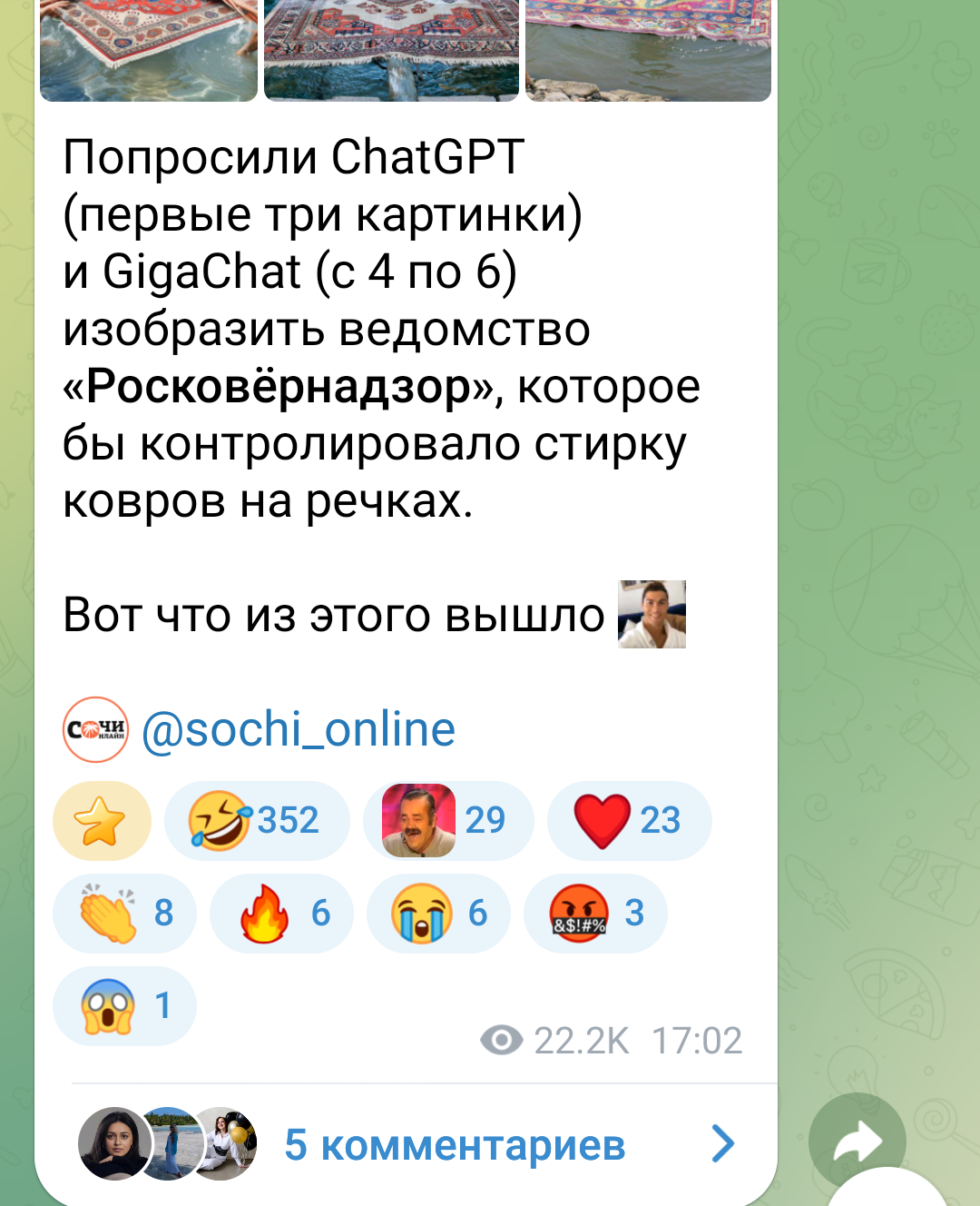 1 Tatyana.Inarsh Юмор Сочинское коврово-речное преступление Серия Из инета: скрины, совпадения, каменты 5 месяцев назад [моё] Юмор Скриншот Из сети Telegram Длиннопост 1 Ещё 0