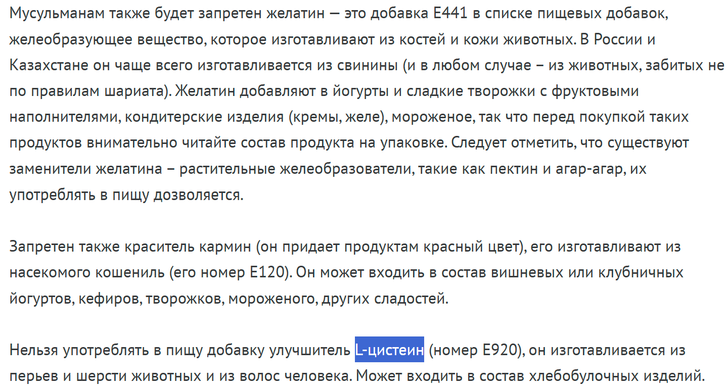 Факт 5. Всякие Е-шки тоже являются харамом. Например вот всем понятный Л-цистеин: