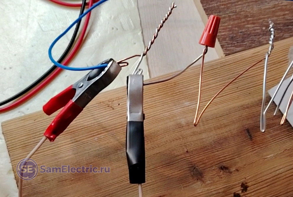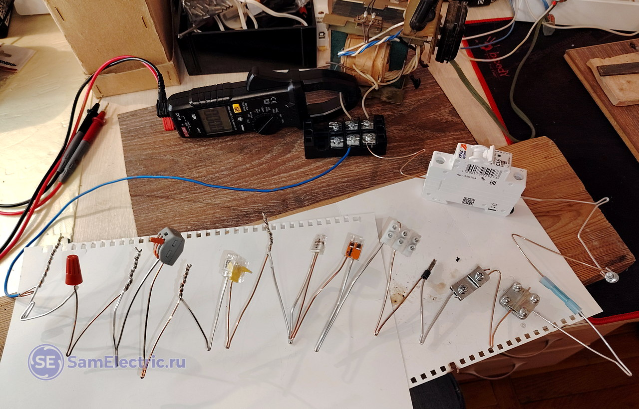 Суть эксперимента проста: Чем лучше соединение, тем меньше у него переходное сопротивление, тем меньше на нём падает напряжение, и тем меньше оно греется. Температура соединения медного и алюминиевого провода – по сути, это конечный результат, по которому можно сравнивать разные виды соединений.