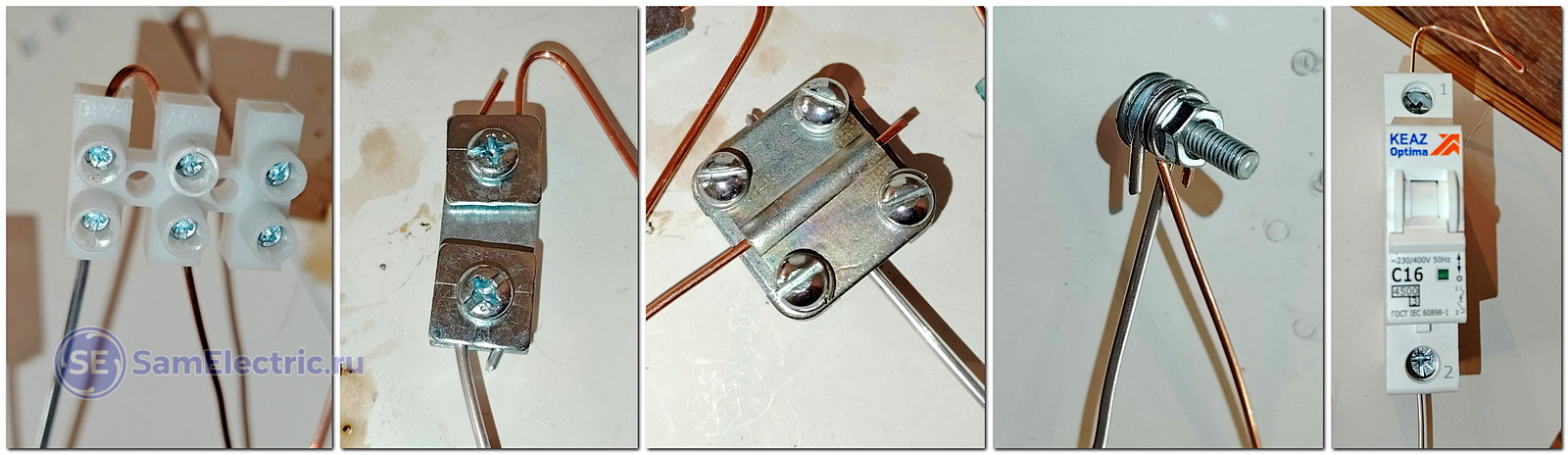 Все соединения я разбил условно на 4 группы – скрутки, зажимы, винтовые соединения и опрессовка. Подробно расскажу, как я делал эти соединения.