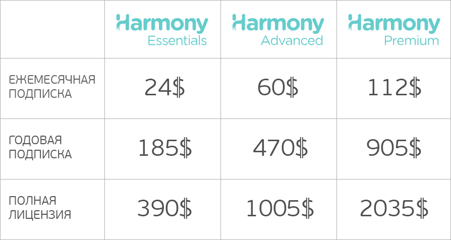 На июнь 2020 года цена Toon Boom Harmony зависит от пакета, всего их три:
