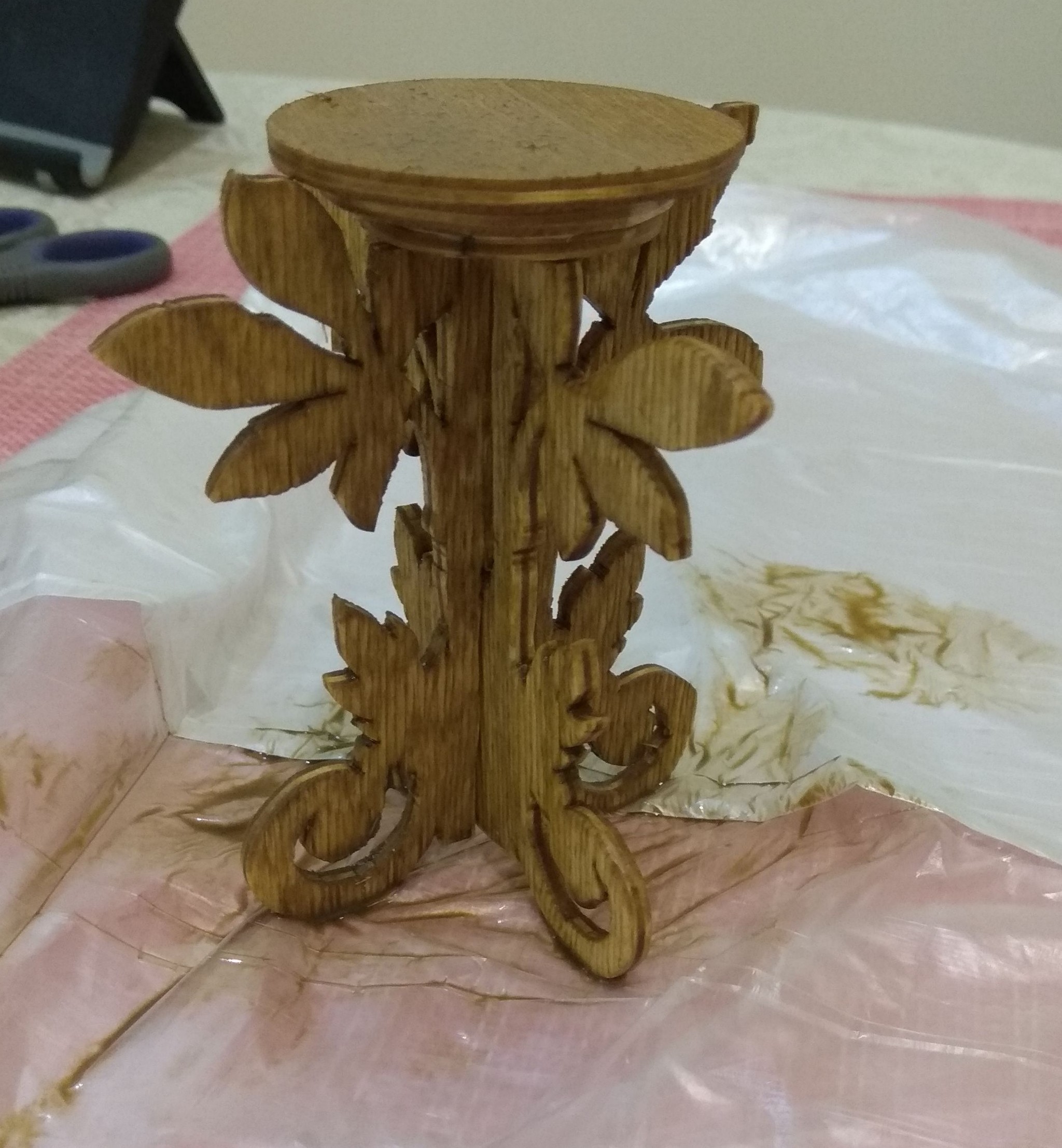 это для души, супруге подставку делал, а так например иконостас на который тратится неделя, по 3-4 часа вечером, ну и суббота с воскресеньем, где то 10-12 тысяч, ну и себестоимость материалов около 5 тыс.