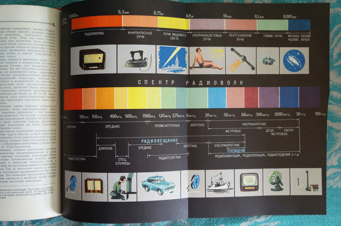 Конечно, тут всё еще основательно пропитано пропагандой, но все же это уже не сталинские времена, и хотя бы вождя народов на каждой странице не славят. Вообще, она вышла в очень интересное время - например, уже полетел в космос первый спутник, но еще не полетел человек, и прямо ощущается волнительное ожидание, что вот-вот это случится. Только-только начали внедрять транзисторы и было понятно, что за ними большой будущее, но никто еще не знал, насколько большое. Ничего почти еще не было известно о других планетах солнечной системы, и на полном серьезе предполагали , что на Венере теплые моря, а на Марсе жизнь уж наверняка есть. Никого еще не заботила экология, и было убеждение, что Земля прокормит любое количество людей, главное научиться забирать у нее эти природные богатства.