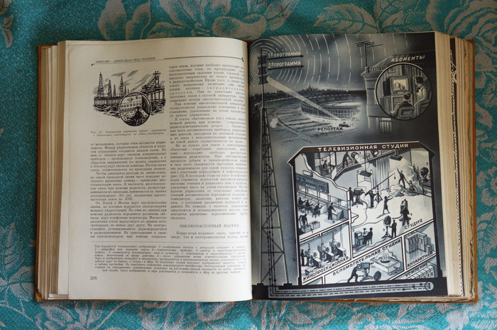 Каждый том посвящен какой-нибудь одной теме (или двум). Мне достались №1 (география), 2 (геология и астрономия), 3 (математика и физика), 5 (техника и промышленность), 10 (искусство). Все тома с великолепными иллюстрациями.