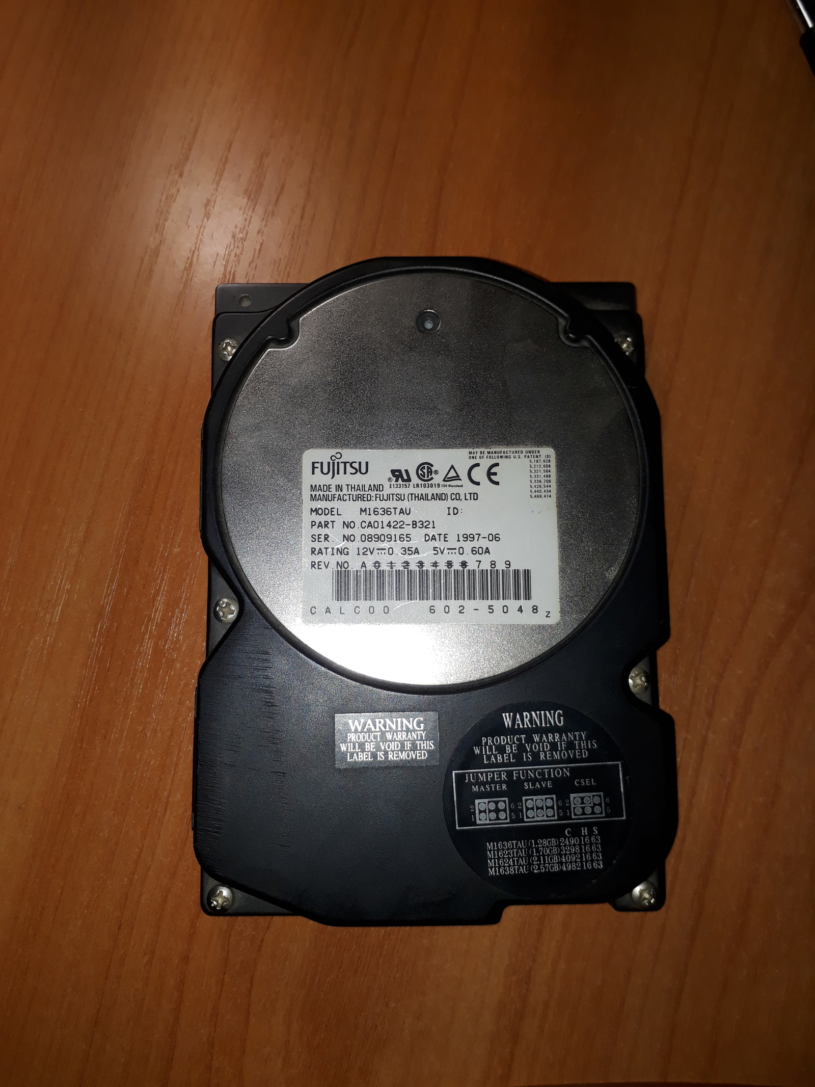 В компьютере стоял старый HDD IDE формата Fujitsu (во время работы он скрипел так, что пришлось надеть наушники):
