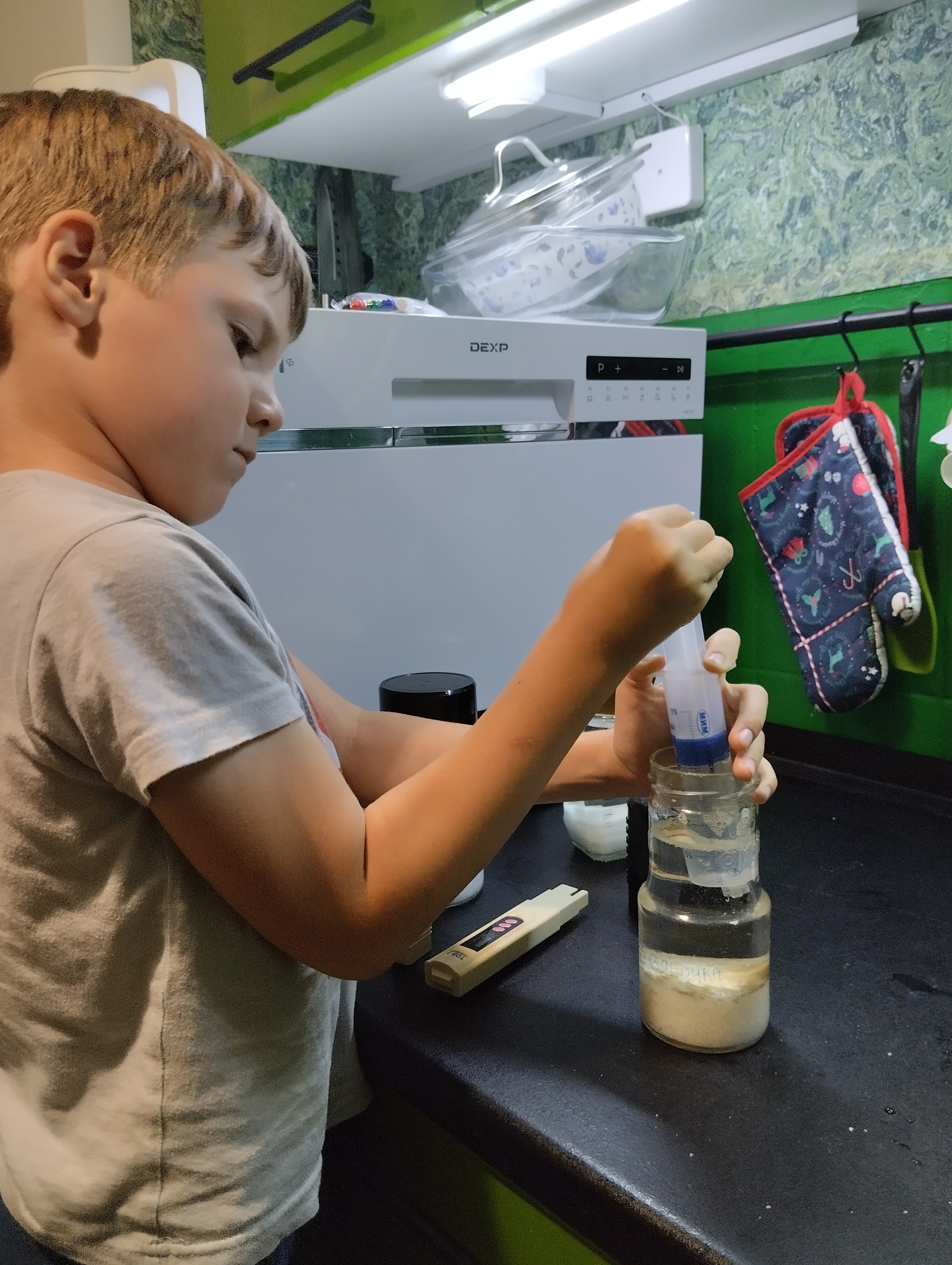 В ходе эксперимента @alexyum, @V.Gaigal и @ivandolgs писали про шприц. В начале я его не купил, потом неплохо обошлись и без него. Недавно у сына обнаружился вот такой агрегат: