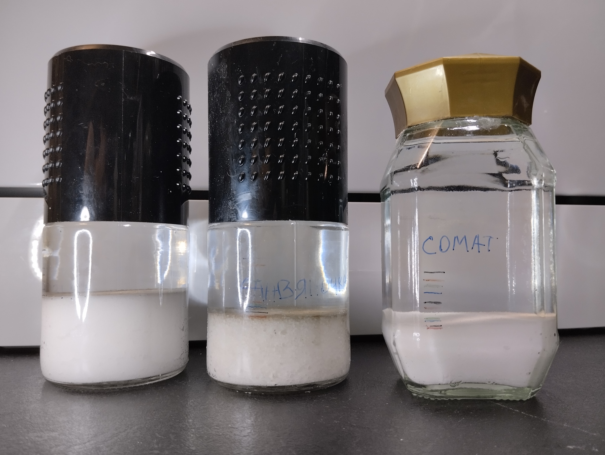 При заливке свежей воды струю пускаем горизонтально по стенке банки, образуя водоворот. Соль при этом плавает так же интенсивно, как и раньше, но не хаотично, а по кругу. Горизонт после такой замены заметно ровнее.