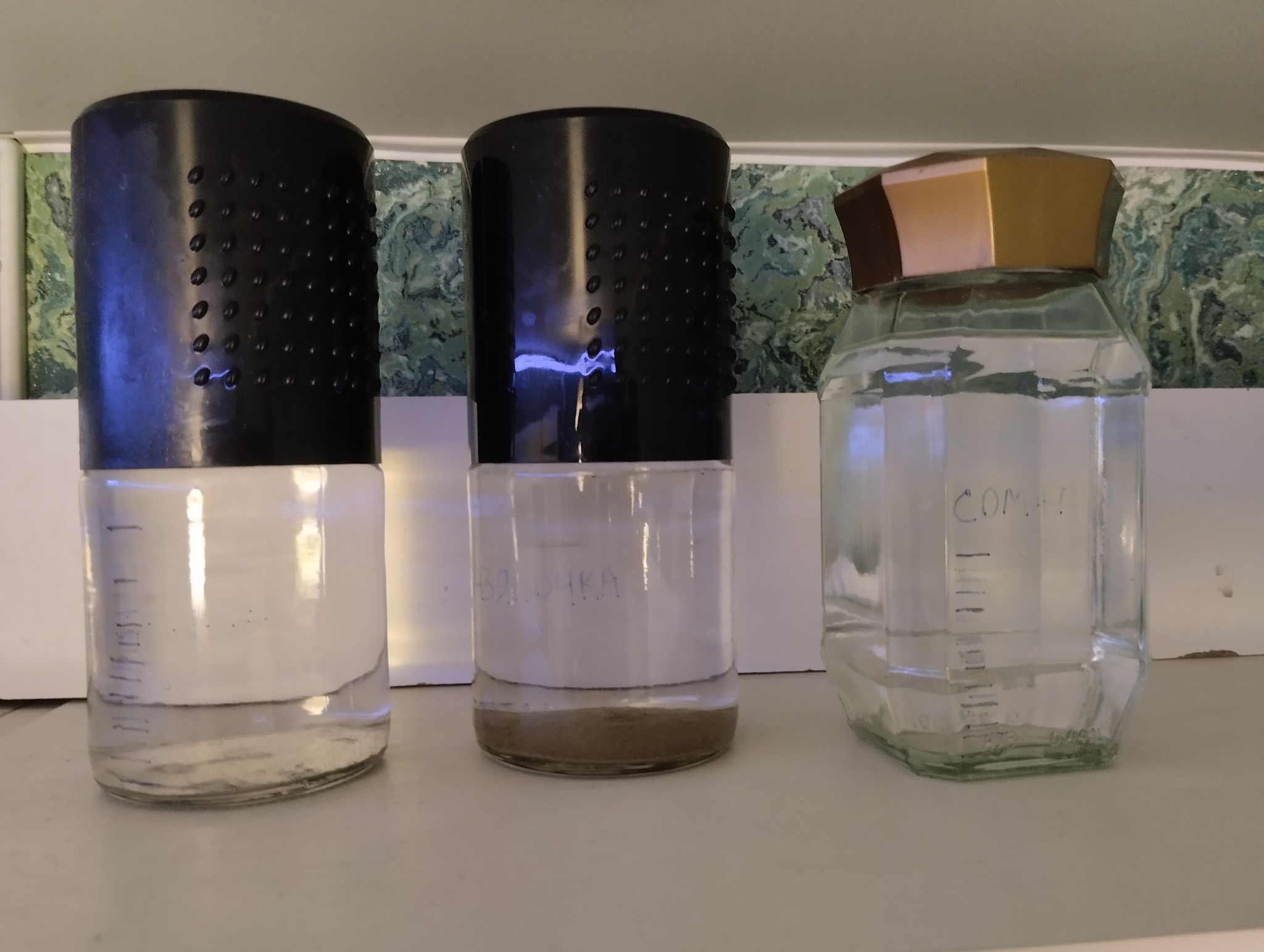 По отметкам на банках можно отследить всю историю, каждая отметка — это неделя эксперимента. Ни о каком быстром растворении не может идти речи. В итоге сомат растворился чуть раньше, но это из-за того, что его изначально было немного меньше.
