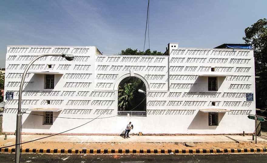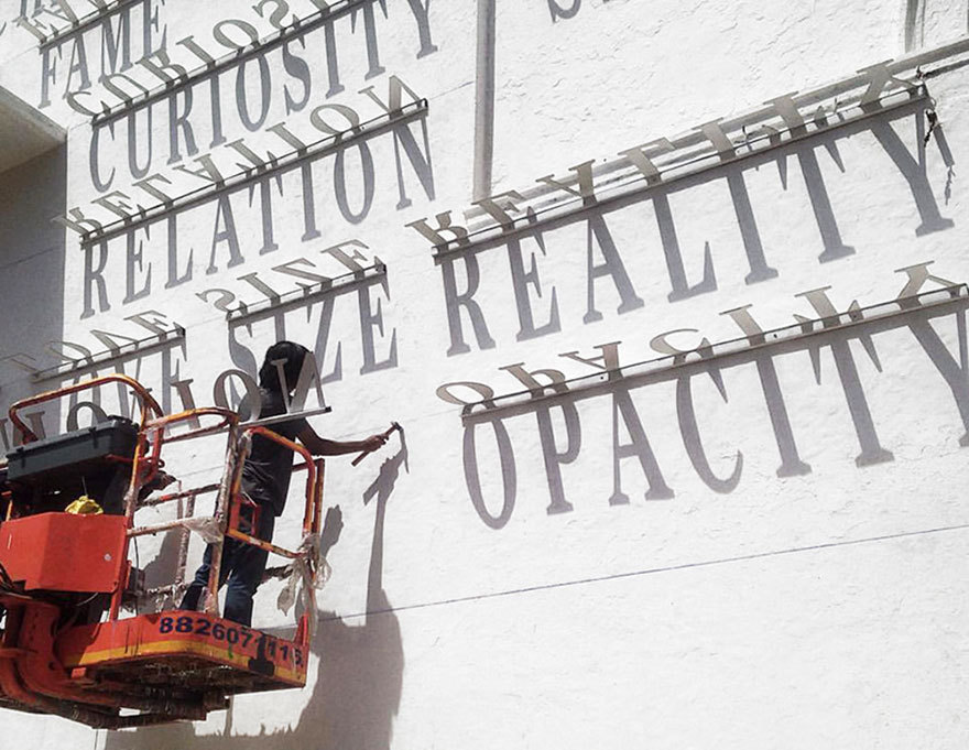 Он назвал свою работу "Время меняет все", визуализируя концепцию с помощью букв и теней. Прочесть надписи можно с восхода до захода солнца, когда тень падает прямо на стену.