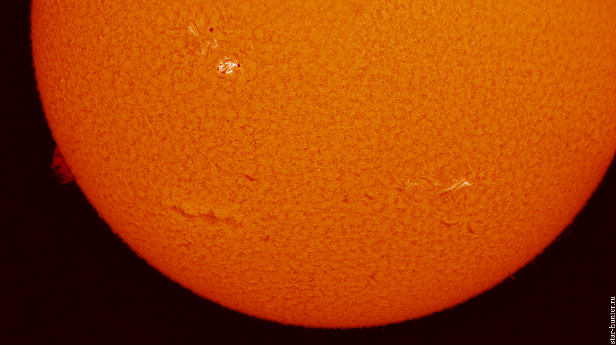 Понимаю, что Солнца получилось "многовато", но оно действительно сегодня заслуживает внимания - несколько крупных активных областей и пятен, а также огромный протуберанец, который держится уже несколько дней.