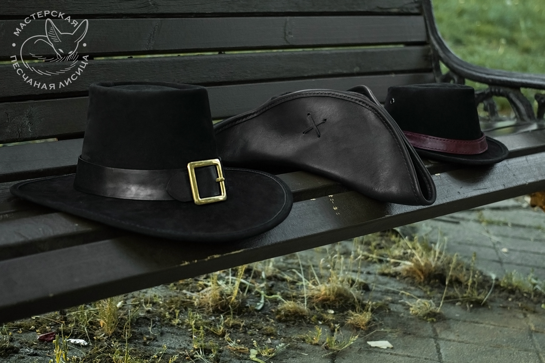 Шляпа Соломона Кейна, пиратская треуголка и клубная шляпа "Стиляга". Все показанные изделия - моя личная полностью ручная работа, все швы выполнены в две нити, шляпа изготовлены с учетом индивидуальных пожеланий заказчиков. Это индпошив по меркам, головные уборы были сшиты на заказ, уже благополучно уехали к своим хозяевам и радуют их. Публикации фотографий головных уборов на моделях происходят (или не происходят) в соответствии с этим принципом. Общие подробности по моей работе - в этом посте.