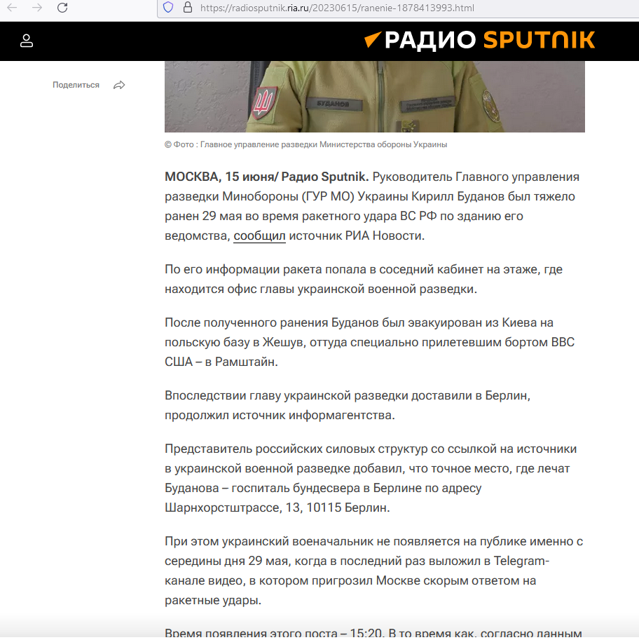 подобное публиковали и другие СМИ, к примеру РИА Новости https://radiosputnik.ria.ru/20230615/ranenie-1878413993.html