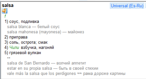 От sāl образовано salsus «солёный», в женском роде – salsa «солёная». Это слово прекрасно сохранили романские языки, потомки латыни, причём словом salsa в итальянском, испанском и португальском обозначает любой соус. Например, по-итальянски salsa di soia «соевый соус», salsa di pomodoro «томатный соус», salsa russa «русский соус». В русском (и не только) слово salsa при заимствовании сузило значение – так мы называем конкретный соус родом из мексиканской кухни.