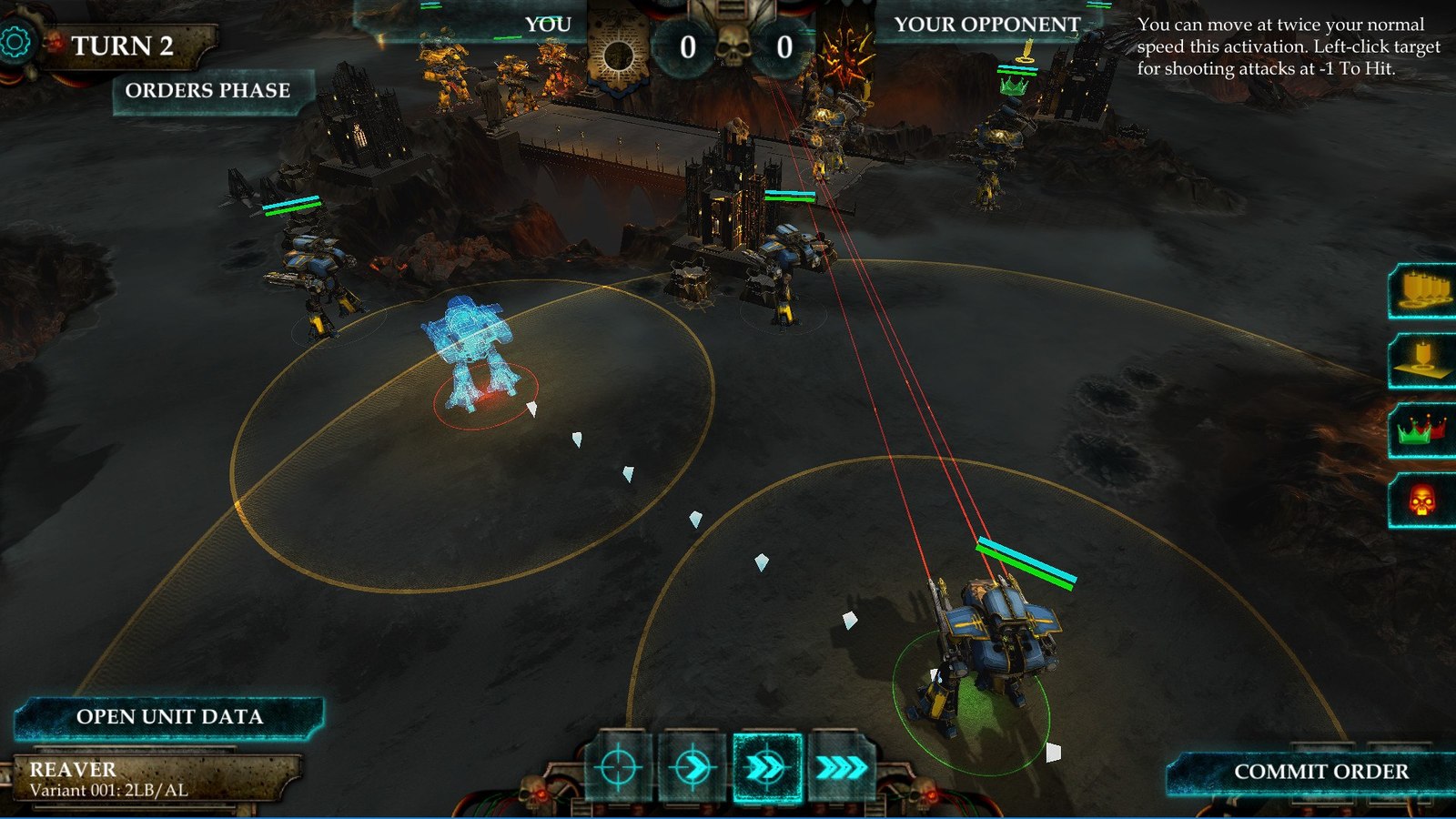 Идея проста как - есть один из 8 Домов Титанов (4 лояльных, 4 ренегатов, у всех по 3 основных типа Титанов), вы ими управляете и уничтожаете вражеских титанов. Всё это в пошаговом режиме.