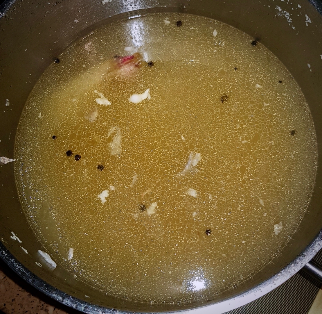Бульон варился из чешуйкосодержащих элементов, поэтому его следует тщательно процедить. Луше через два сита. И лучше пару раз.