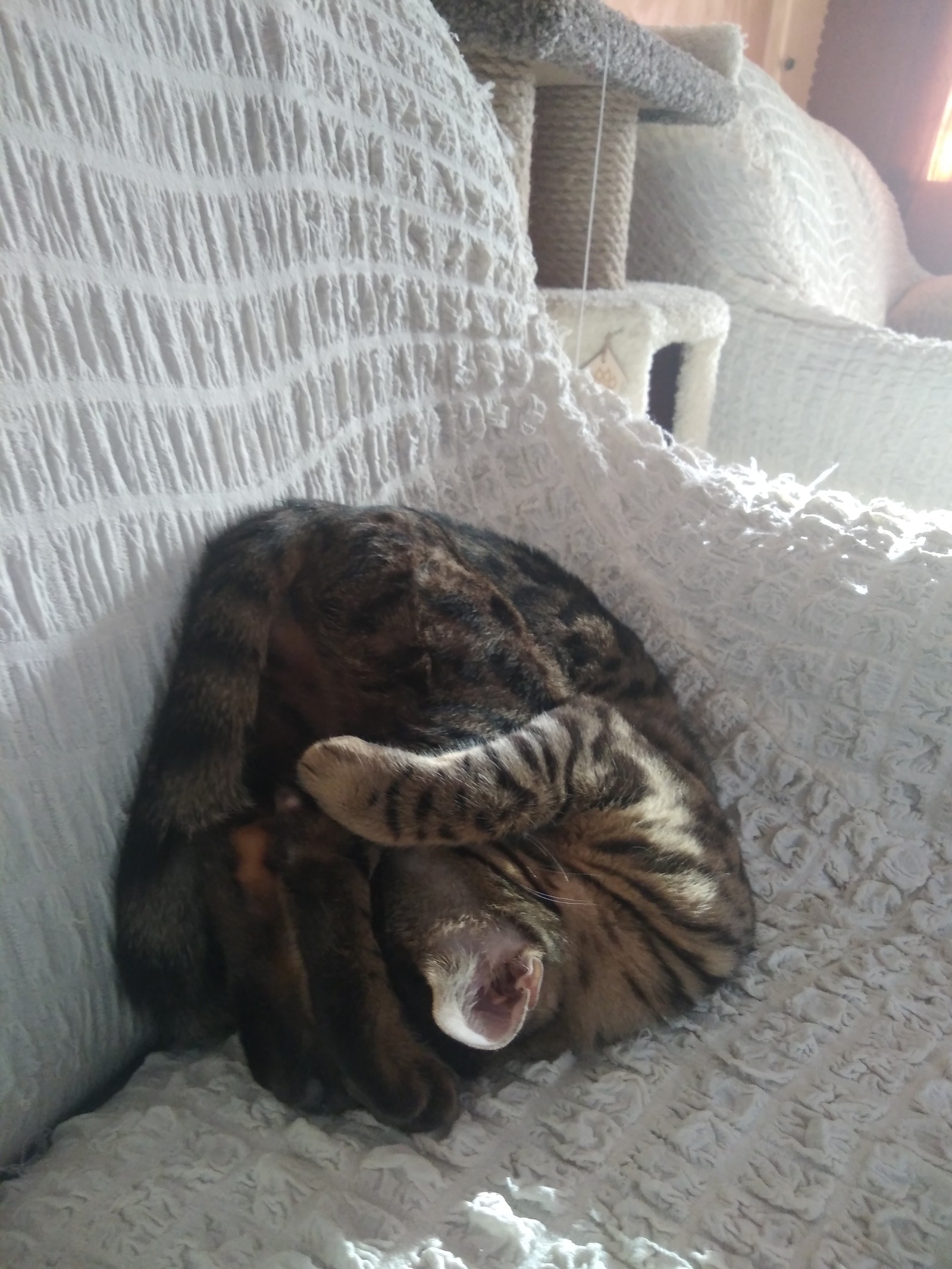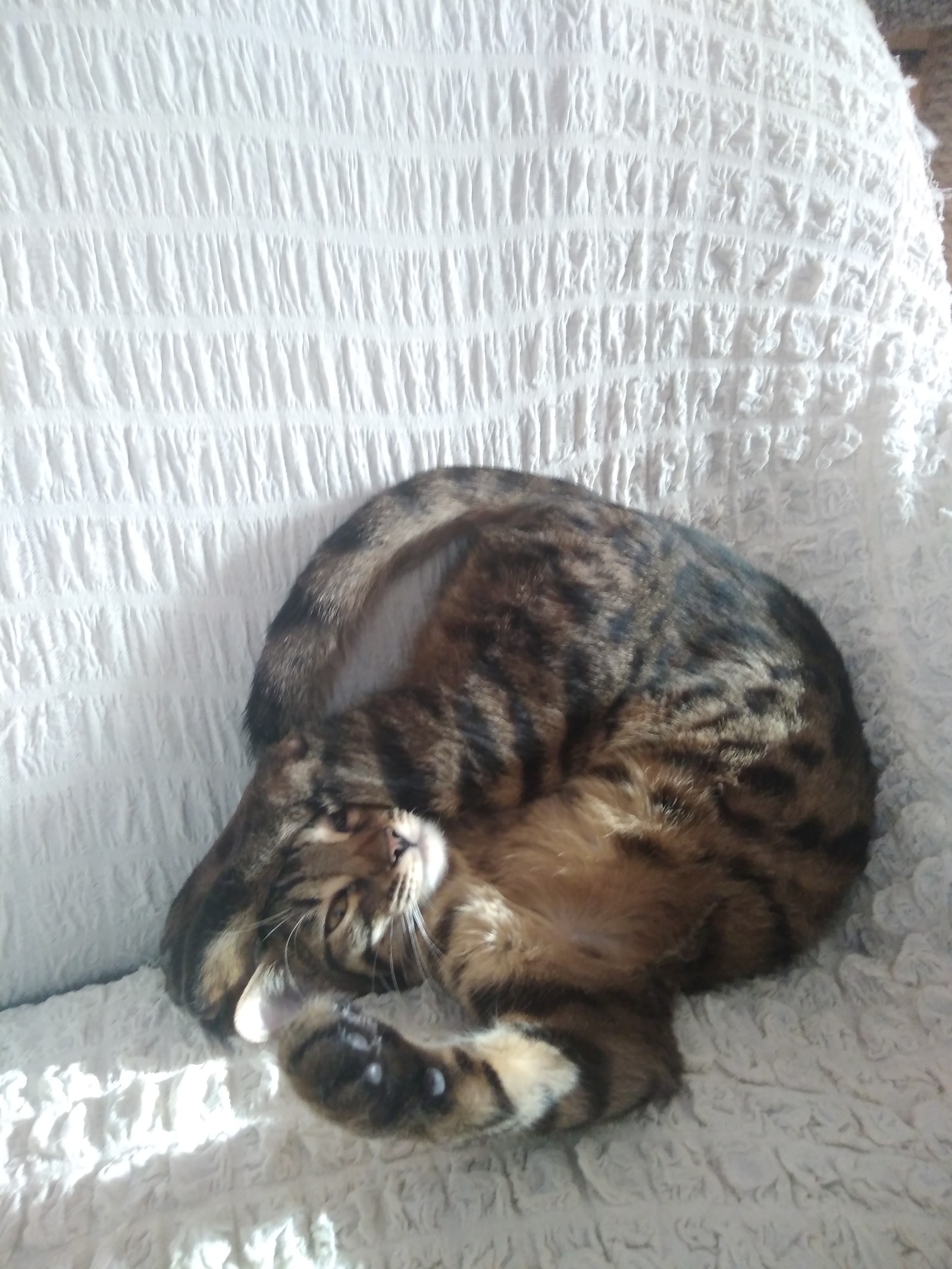 Устала после рабочей недели я, а кошка всем видом показывает что она!
