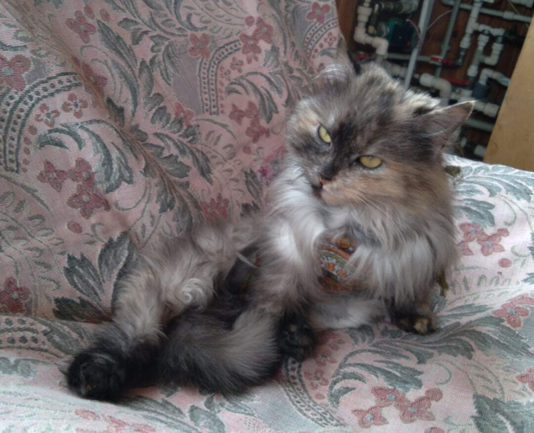 Появилась эпизодически ещё летом на помойке в деревне, была ухоженной и явно недавно из дома.