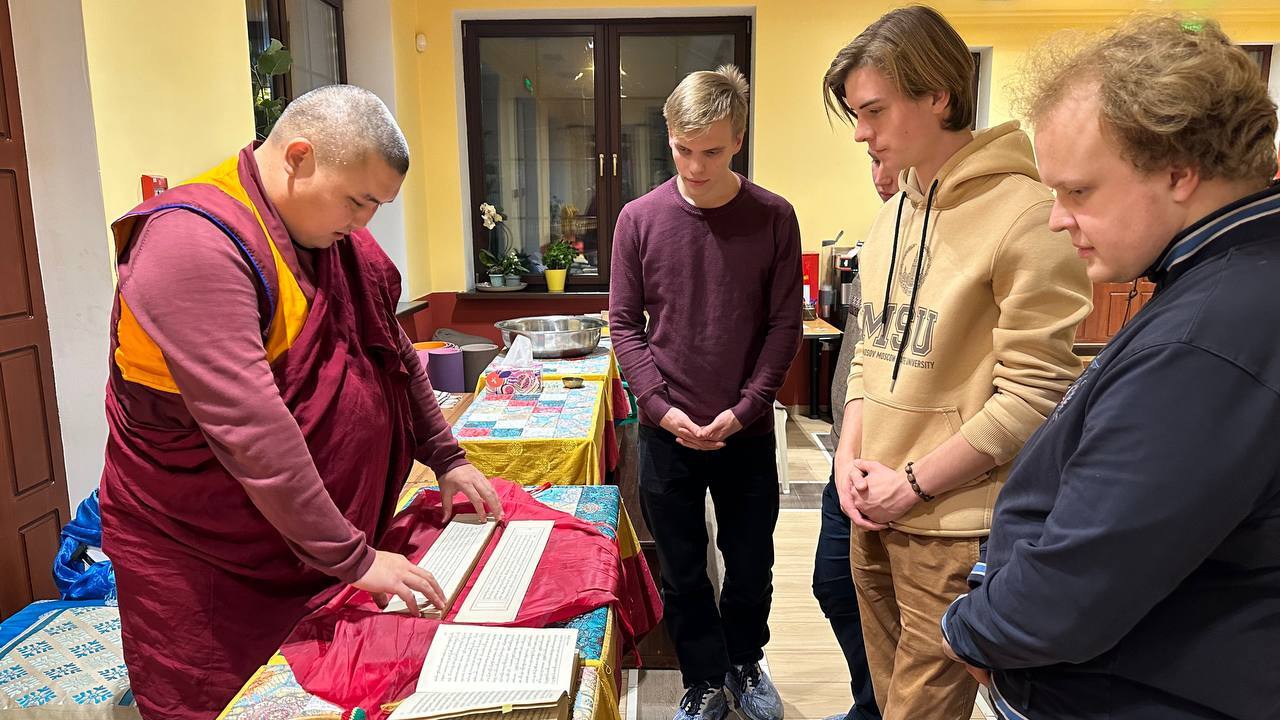 15-го октября в московском буддийском храме «Тубден Шедублинг» состоялась встреча председателя Центрального духовного управления буддистов Геше Йонтена со студентами магистратуры философского факультета МГУ.