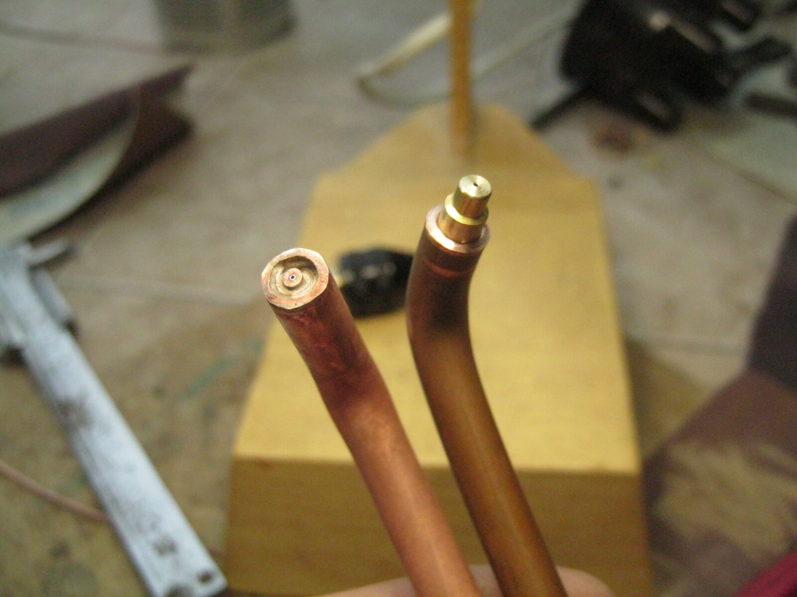 Фото 14. Спаянные детали. Хорошо видно последствие маленькой аварии – подплавилась и осела медная трубка, сопло провалилось, хотя и не утратило функциональности. Не столь изящно как хотелось но удовлетворительно.