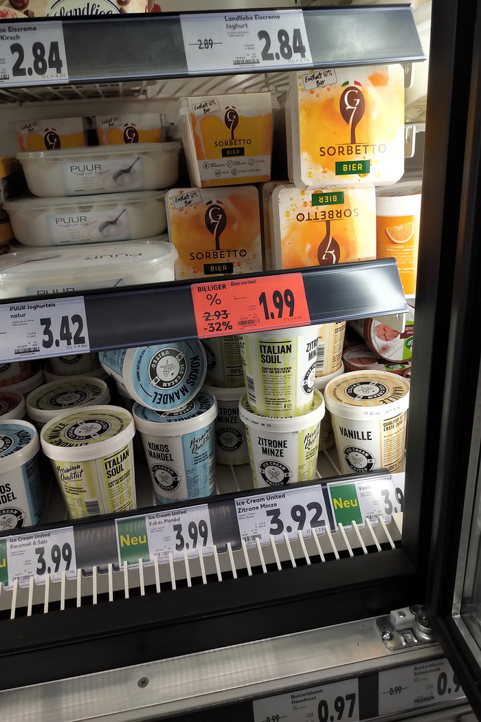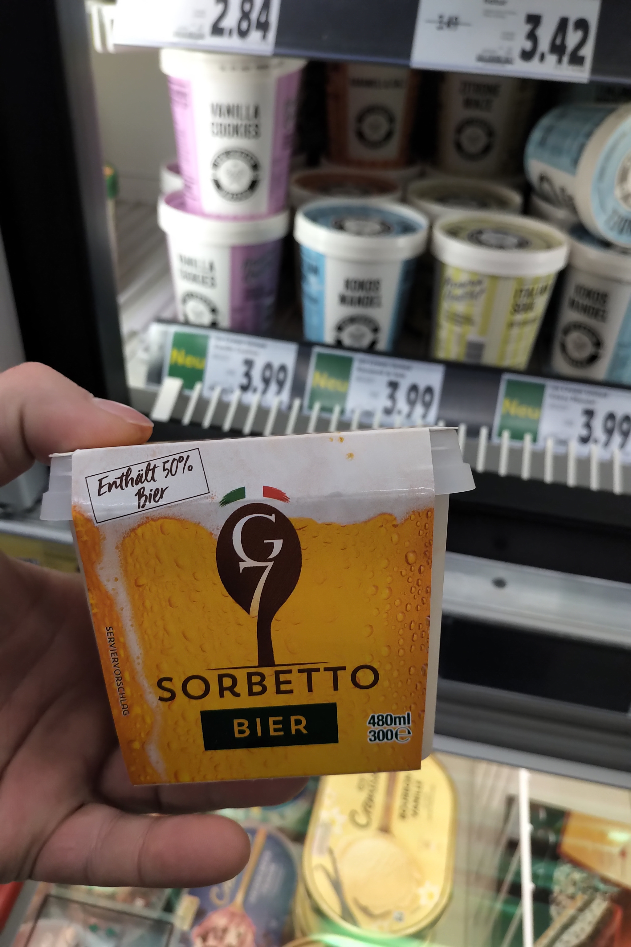 12 GraffOblomov Наши в Германии Сорбетто - пивное мороженое в Германии 5 лет назад Лично я вижу в первый раз. Германия, крупный супермаркет. Мороженое с 50-ти процентным содержанием пива, с хорошей скидкой. Видать, не заходит. [моё] Пиво Сорбет Германия Длиннопост Ещё 0