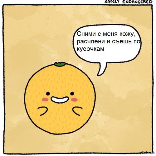 «...я вгрызся зубами в его мягкую плоть... Потоки хлынули из разорвавшейся кожи... Я наткнулся на одну из многочисленных костей, перемолол в пыль зубами и вскричал: "Сука, написано же было МАНДАРИНЫ БЕЗ КОСТОЧЕК!"»