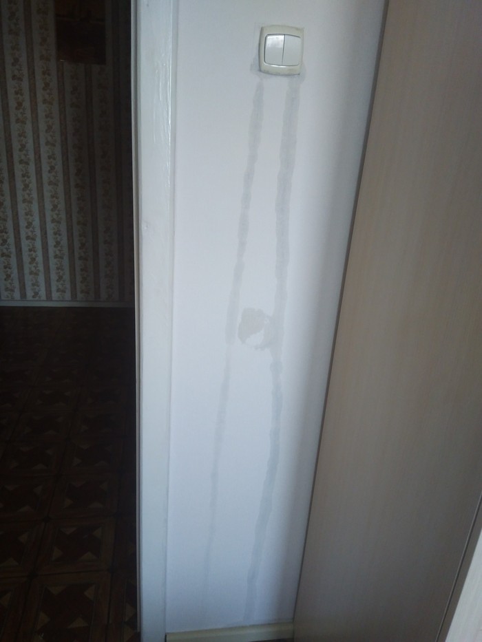 Поднимаюсь к соседям и вижу такую картину. Баба бегает с планшетом и разговаривает с кем то по видеосвязи, а парень который долбил эту стену, стоит и смотрит на меня. Но самое смешное, из трубы хлещет вода, а они ее даже ничем не перематывают. Ну снимите кофту с себя или уж на то пошло трусы.... В общем треш. День удался...