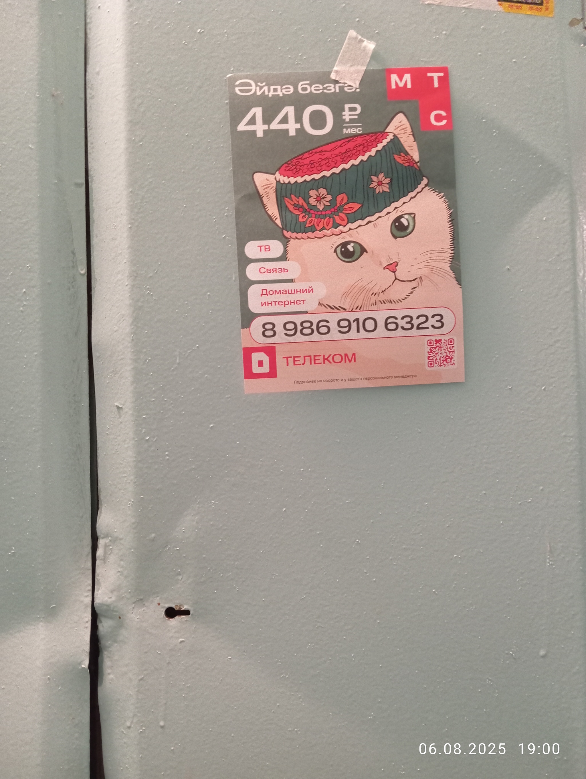 Звоню по этому номеру - ответил менегер МТС по имени Адель. Спрашиваю - кто ему разрешил расклеивать рекламу в подъезде на электрощитках? Молчит. Требую, чтобы он лично пришел и убрал всю рекламу. Бросает трубку.