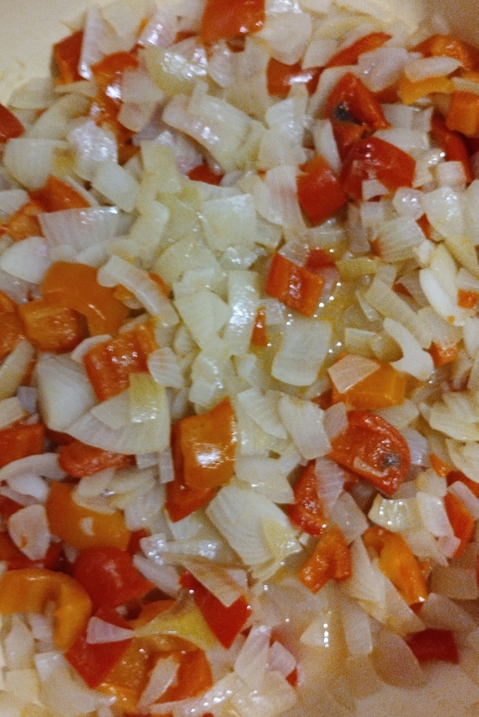Лучок, красный перец и перец чили обязательно!
