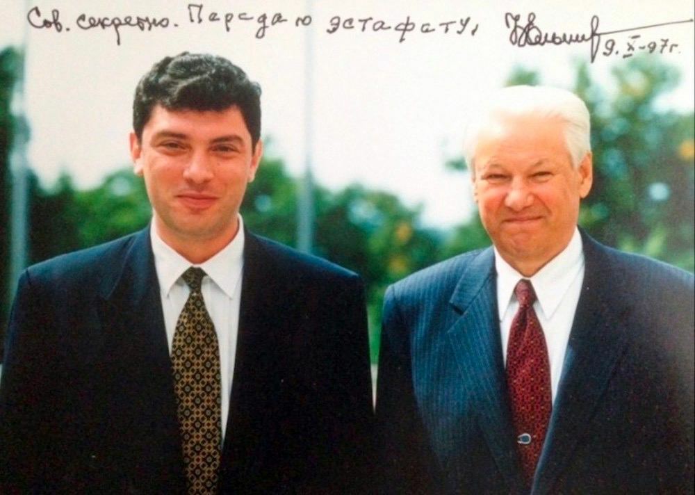 11 52nnorgru «Совершенно секретно 3 года назад «Совершенно секретно. Передаю эстафету». Памятное фото от Бориса Николаевича Борису Ефимовичу. В то время Борис Немцов был лидером по президентскому рейтингу и считался преемником. Россия. 9 октября 1997 г. Кросспостинг Pikabu Publish Bot Борис Ельцин Борис Немцов Политика Старое фото 1 Ещё 0