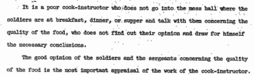 Само руководство описывает должностные обязанности «инструктора по кулинарии», исходя из общих соображений, таких как «убедитесь, что люди находят вашу еду вкусной»