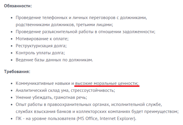 1 Lt.Schmidt Совестливый коллектор 9 лет назад Искал вакансии на подработку, и вот на какую прелесть наткнулся. Аж скупая слеза непроизвольно покатилась по щеке, ведь есть же еще добрые люди у нас! Коллекторы Объявление